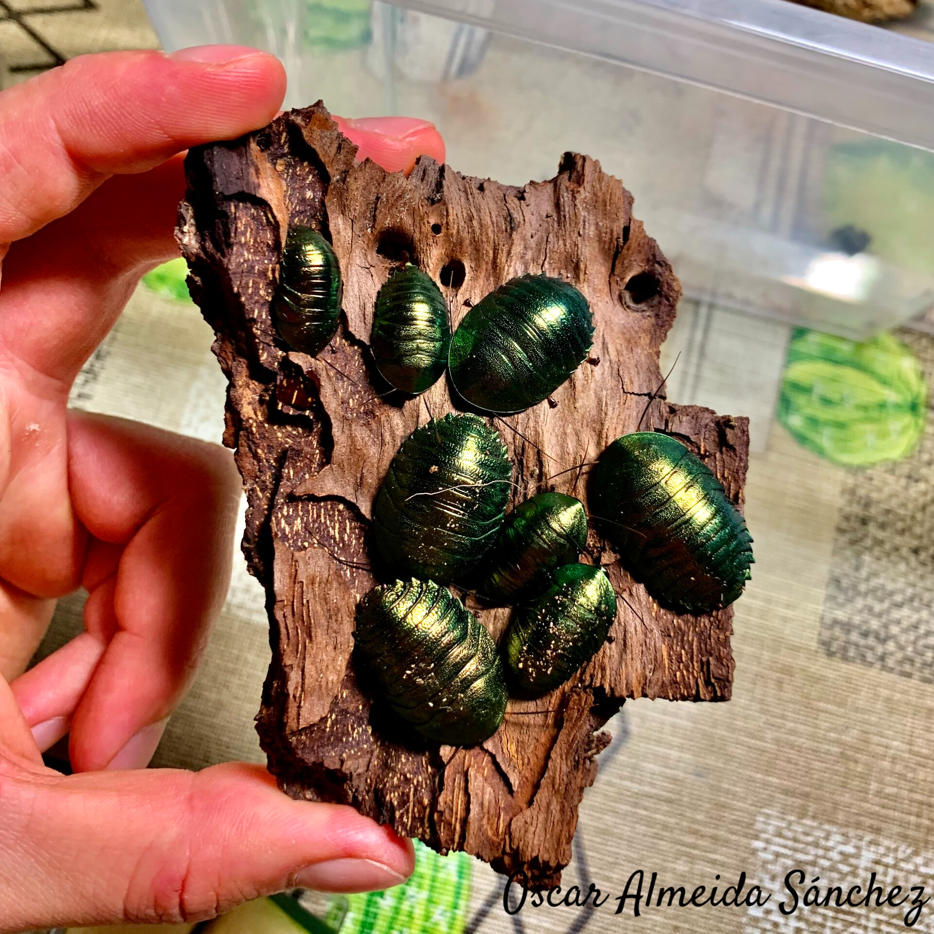 Cuando mudan la piel, la exuvia parece una cucaracha muerta, ya que no se comen la piel sino que cae directamente al suelo. La ninfa tiene al principio color blanco, pasando por marrón, granate brillante y finalmente, hasta que la piel se seca, alcanzan el color esmeralda típico.
